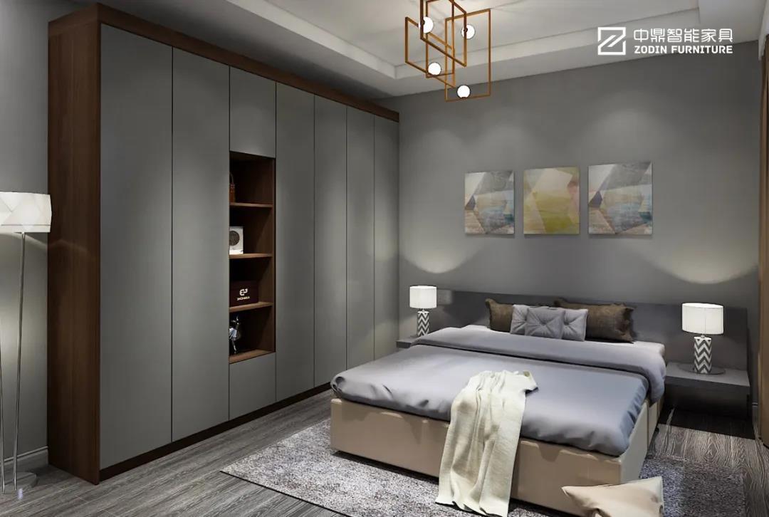 主臥家具包括全鋁衣柜、全鋁床頭柜、全鋁梳妝臺、全鋁床、全鋁書桌等等。中鼎全屋定制家具可以把這些功能集中在一個組合柜體上體現,節省大量空間和成本,尺寸設計更為準確,美觀實用為一體,讓家也變得更干凈整潔。